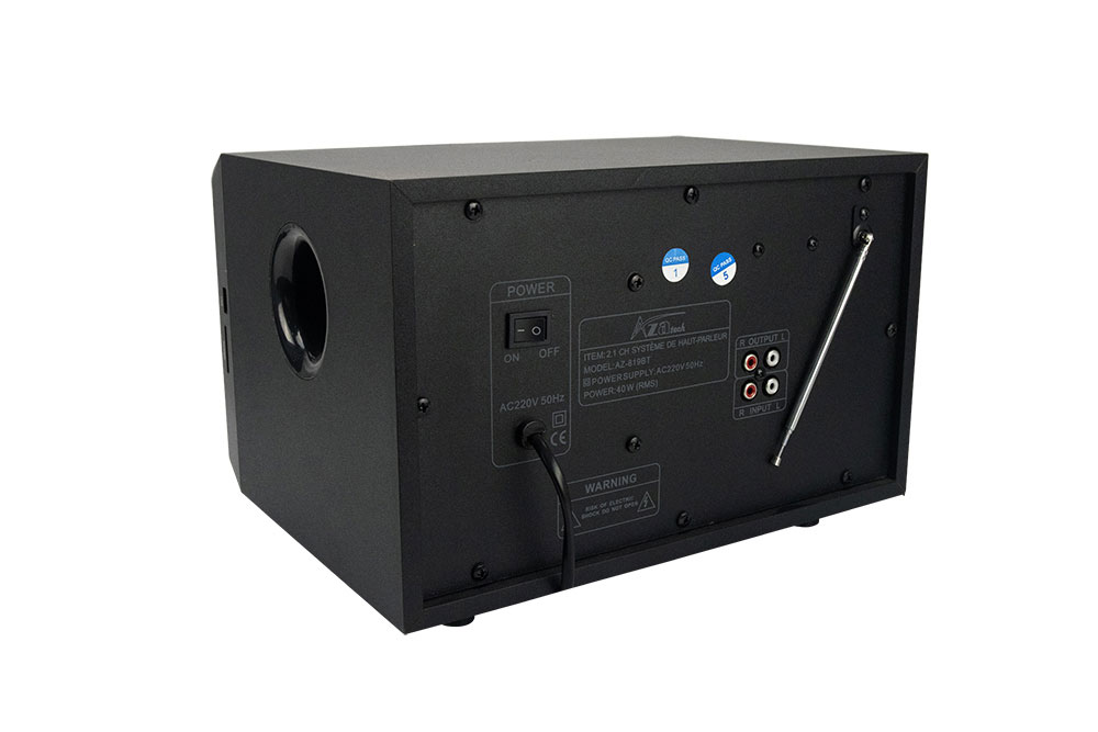 Le système Subwoofer bluetooth AZ-819BT vous permettra de profiter de la puissance de la musique sous la plus brillante forme .Le produit est compatible avec la version Bluetooth , Cela vous permet de connecter n’importe quel appareil compatible Bluetooth et de lire vos morceaux préférés à partir d’une grande variété de sources. Il y a aussi un port USB et un lecteur de carte mémoire pour la musique.Pour contrôler la façon dont vous jouez votre musique, la télécommande qui comprend toutes les fonctions à portée de main.